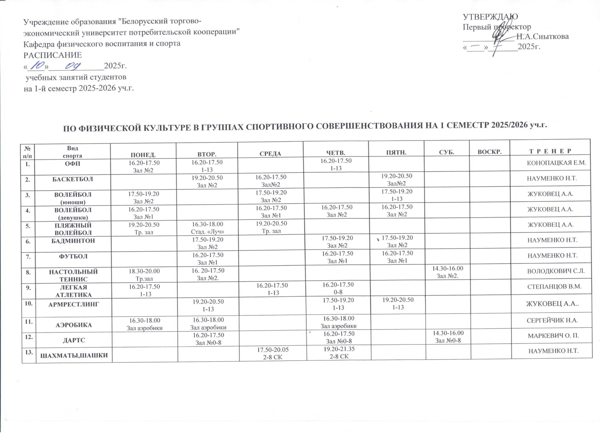 РАСПИСАНИЕ ЗАНЯТИЙ